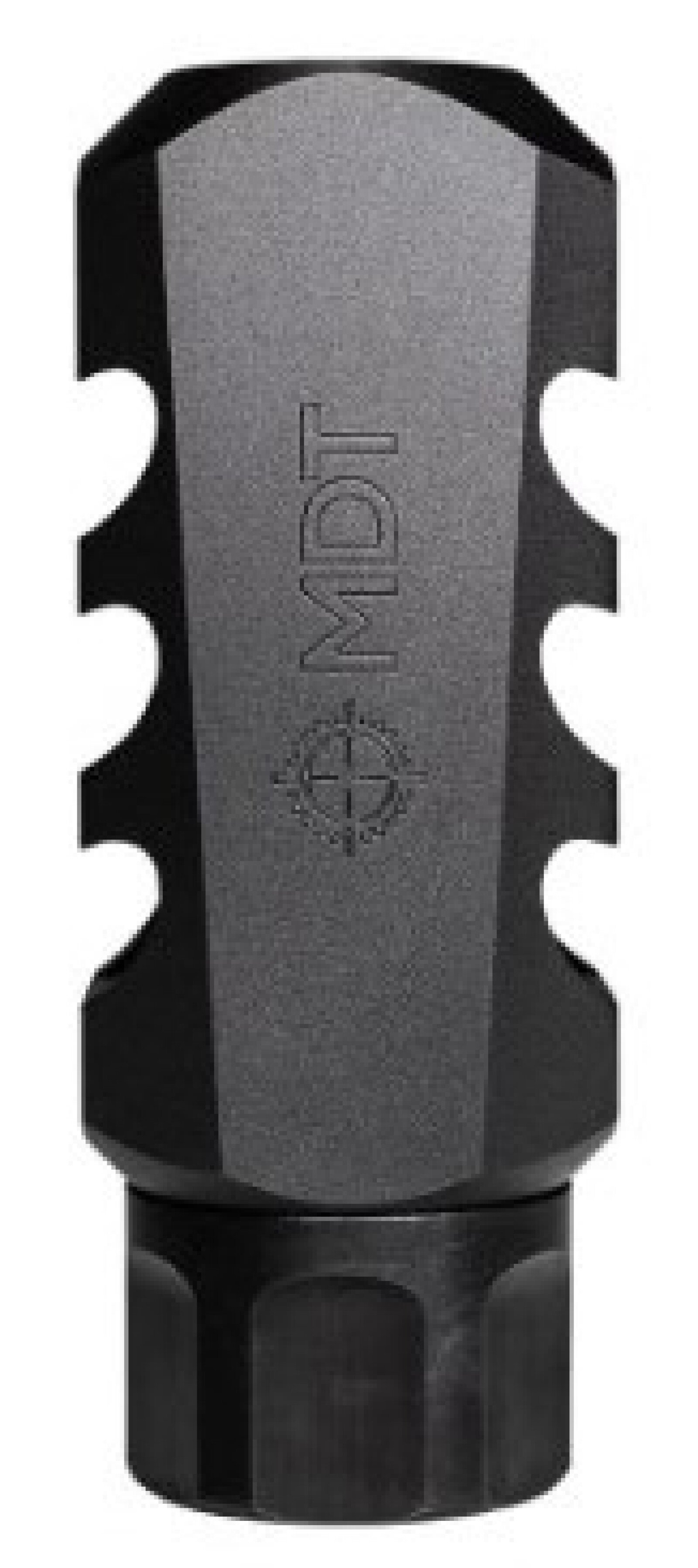 Die MDT Elite Mündungsbremse weist Prallflächen im 35 Grad Winkel für optimale Gasableitung und Rückstoßminderung auf. Dabei ist das Design elegant stromlinienförmig.
