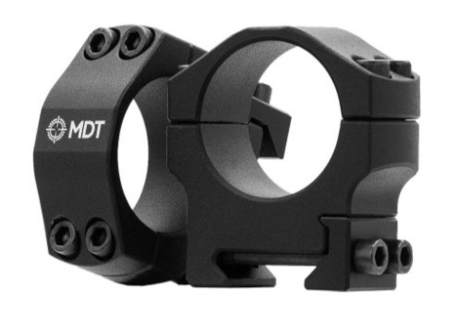 Die MDT Präzisions-Zielfernrohrmontageringe sind nach der STANAG 4694 Spezifikation (NATO Spec.) gebaut. Das bedeutet, dass der Montagering eng auf der Montageschiene aufsitzt. Dabei wird auf die schrägen Schienenunterseiten Druck ausgeübt, um eine solide Verbindung zu erhalten. Dieses Design erlaubt auch eine Montage auf nicht-spezifizierten Schienen.