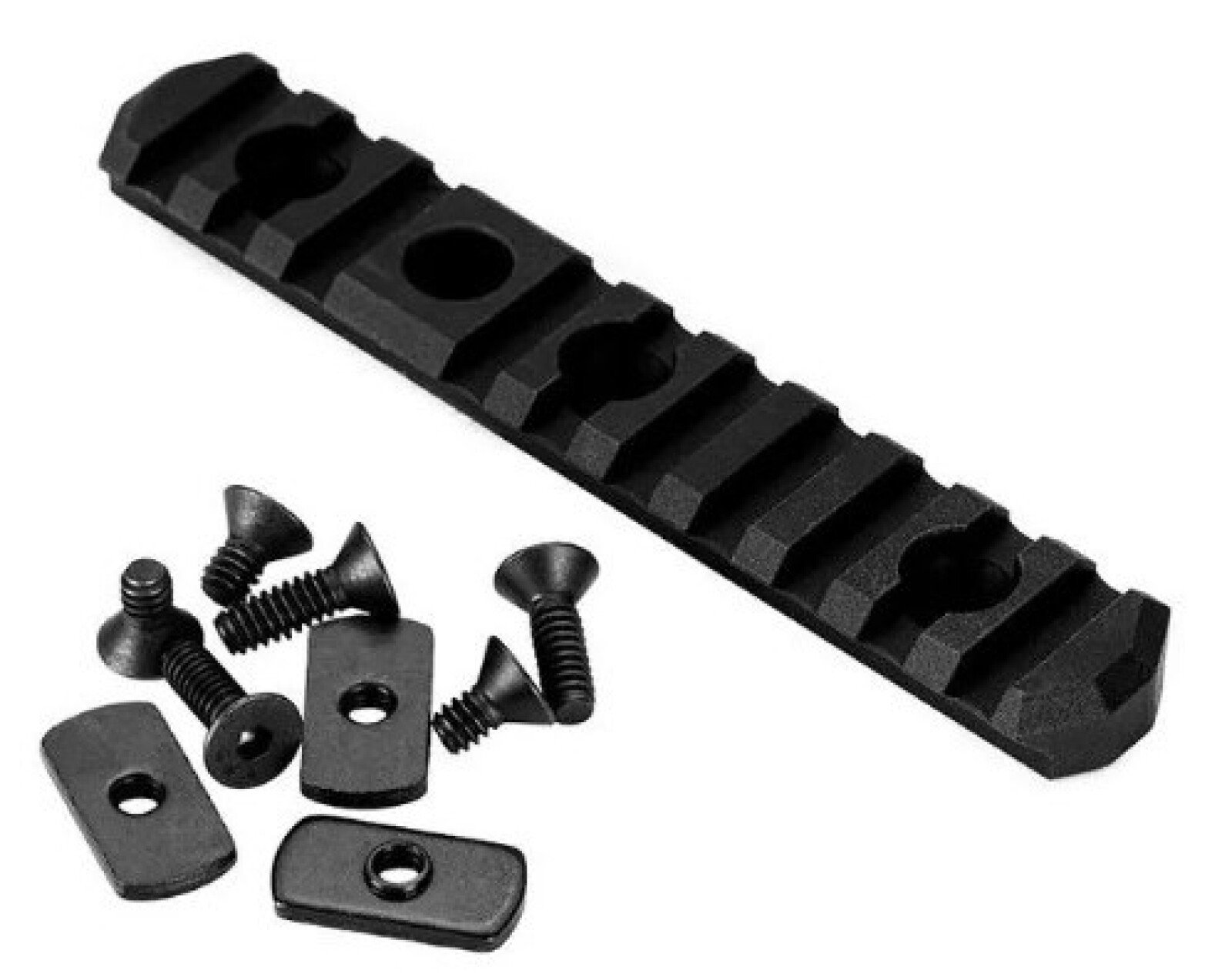 - Inklusive 10/24 Flachkopfschrauben (3/8″ und 5/8″) und 10/24 Schweißmuttern zur Montage am AR15 Handschutz