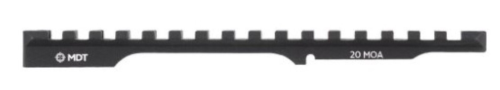 Die Picatinny Scope Base Rails von MDT bieten eine sichere Montagebasis für Ihre Optik. Gefertigt aus 6061-T6 Aluminium, schwarz harteloxiert für ein dauerhaftes Finish. Die Schienen sind so profiliert, dass diese bündig auf dem System aufliegen und der Geometrie des Auswurffensters entsprechen. Die Schienen haben standardmäßig eine Vorneigung von 20 MOA, damit die Höhenverstellung Ihres Zielfernrohrs optimal ausgenutzt werden kann.