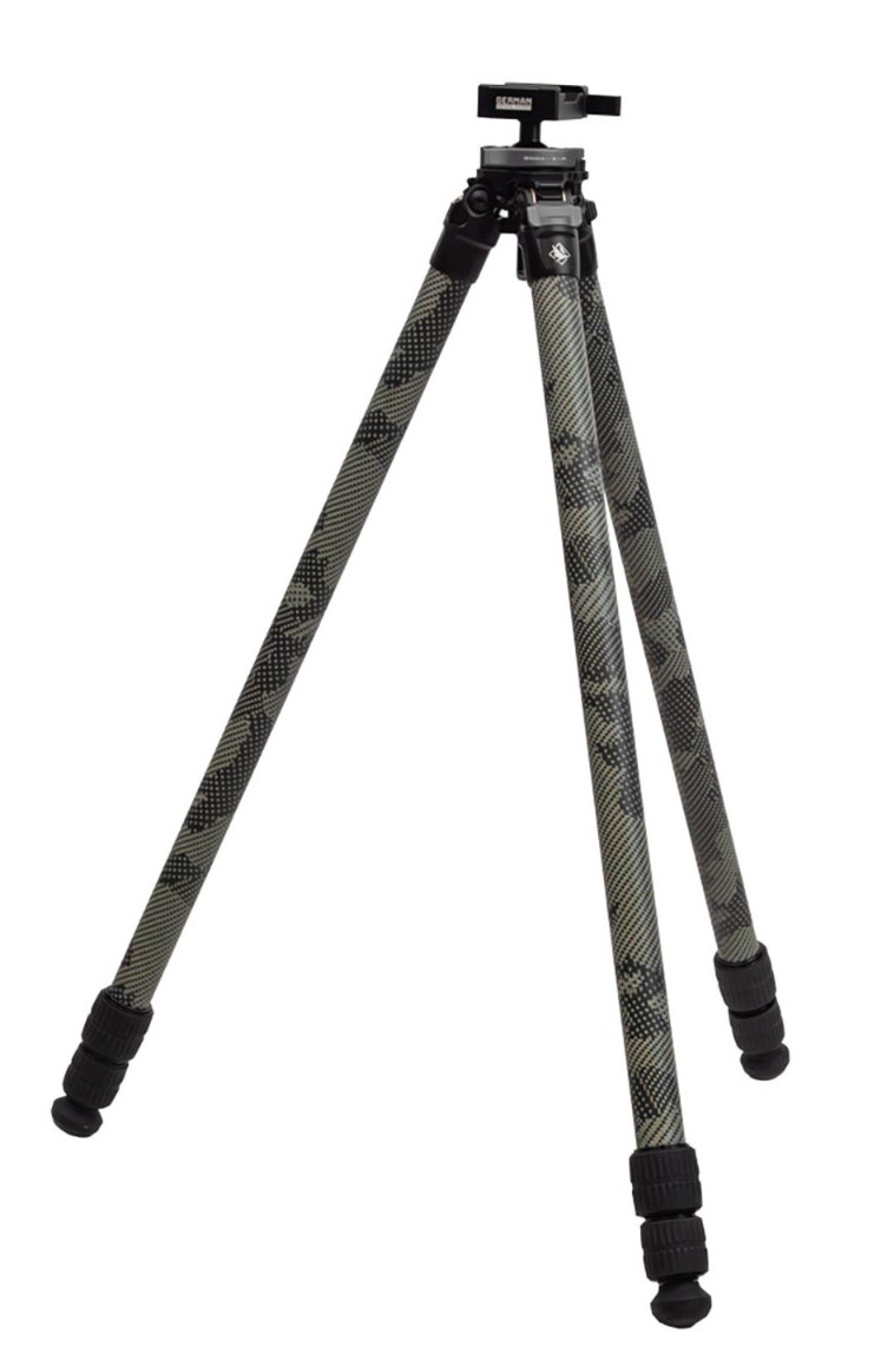 Die Stativbeine bestehen aus einer verbesserten Verbundstoffmischung und sind dadurch leichter und steifer als herkömmliche Carbonfaser. Dieses Material bildet auf natürliche Weise ein tarnähnliches Muster, das erweitert wurde, damit sich das Stativ effektiver in Außenumgebungen einfügt.