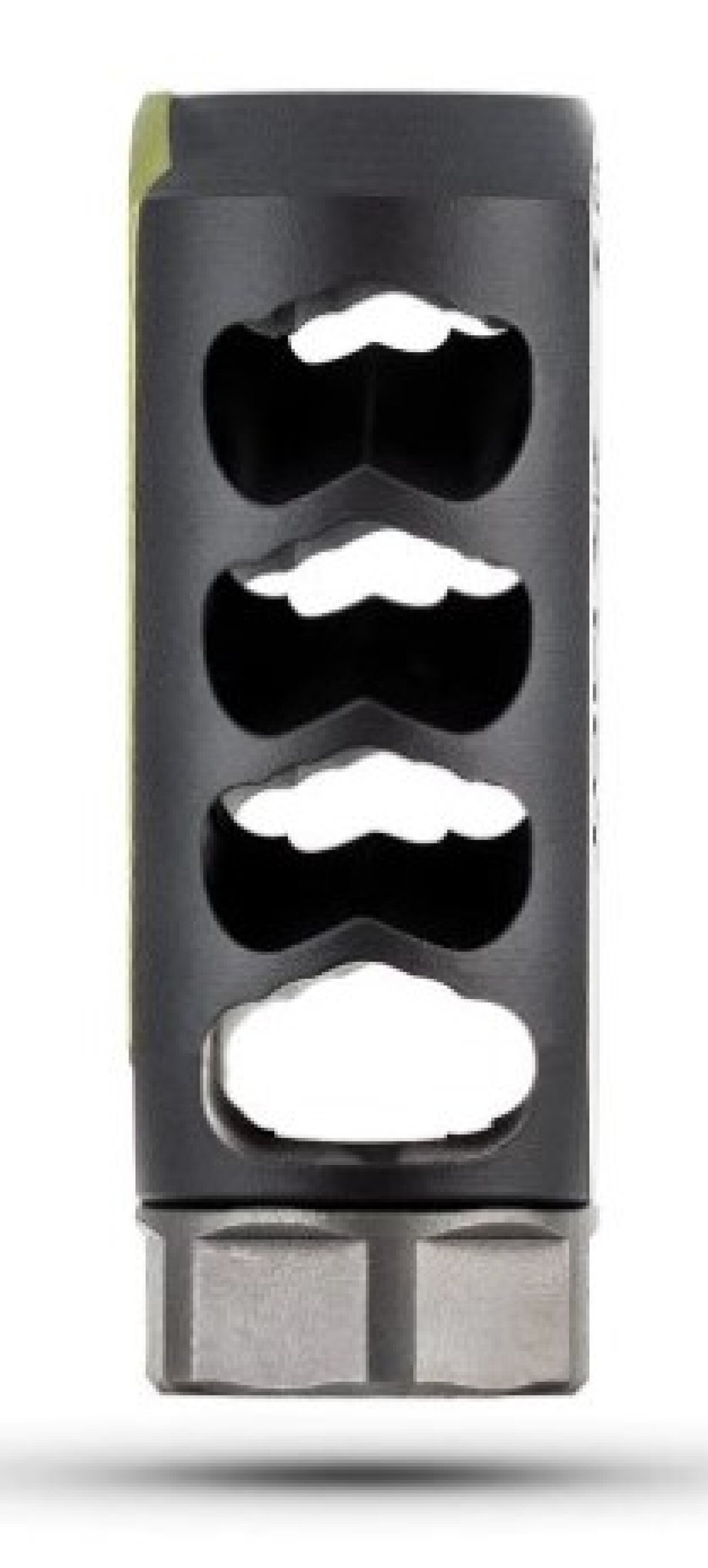 Vier Öffnungen, strategisch in verschiedenen Winkeln geschnitten, um die Rückstoßreduzierung zu maximieren und die Gehirnerschütterung des Schützen zu minimieren.