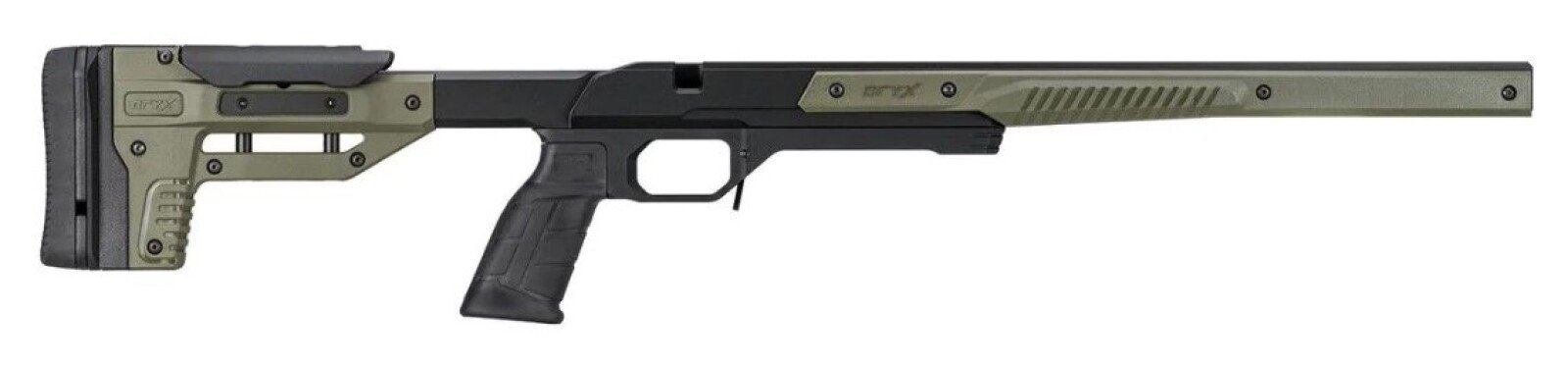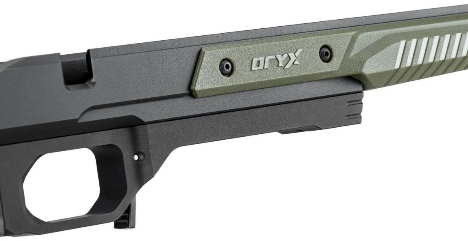 Das ORYX-Chassis wurde als kostengünstige Alternative zu einem herkömmlichen Repetierbüchsen- oder 10/22-Gewehrschaft entwickelt. Der ORYX wurde sowohl im Hinblick auf die Reichweite als auch auf das Führen bei der Jagd entwickelt. Durch sein spezielles Design bietet es überlegene Ergonomie.