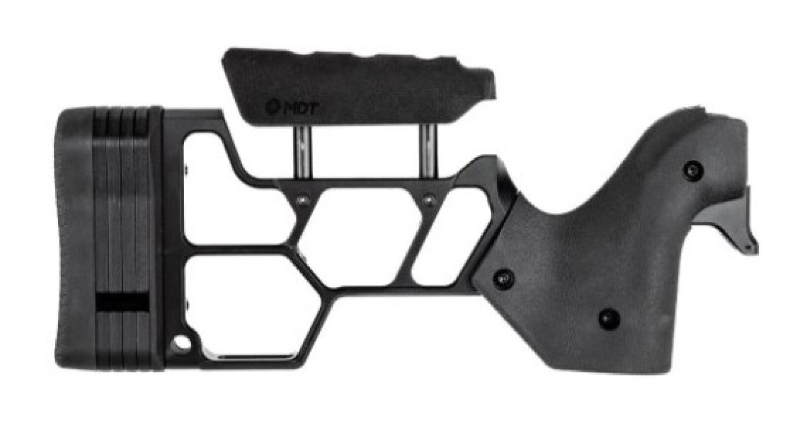 Der STS (Skeleton Traditional Stock) Hinterschaft verleiht dem Gewehr mit dem hoch modularen LSS Gen3 Precision Rifle Chassis ein eher traditionelles Aussehen und Ergonomie. Gemacht für Schützen, die die Präzision und Modularität eines Chassis möchten, aber nicht auf den eher klassischen Look und die Funktion verzichten wollen - der STS kann beides bedienen!