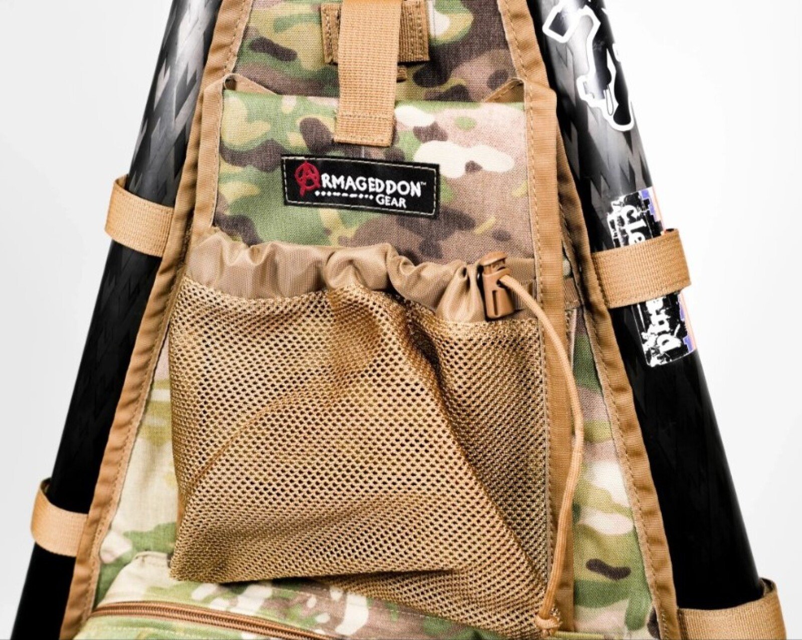 Der Armageddon Gear Tripod Caddy ist eine bequeme Lösung, damit Du Dein essenzielles Match-Equipment immer griffbereit hast. Dieser geniale Ausrüstungsgegenstand bietet Platz für alles, was Du brauchst: Kestrel, Data Boards, Magazine, Wasserflasche und sogar Taschentücher :).